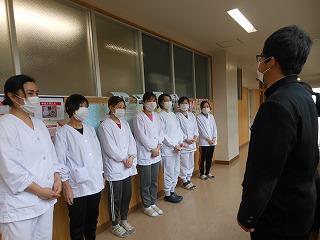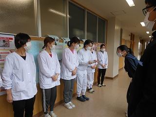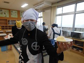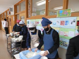 今日の給食後、給食委員会委員長の山本日香理さんと副委員長の勝田光稀くんが調理場を訪問しました。後期の給食委員の皆さんが記したメッセージカードを7名の調理師さん、調理員さんにお渡しました。3年生の給食はあと10回、9年間の成長を支えてくれた給食を味わっていただきたいですね。