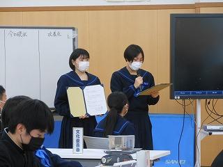 今月15日に行われた生徒議会で出された意見の中から、学校生活のきまりの見直しや改善点について話し合いました。この話し合いをもとに、来年度の取組につなげていくことになります。