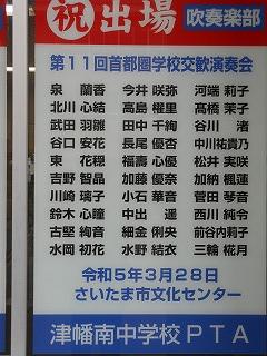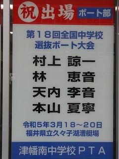 今年度末の3月に、全国レベルの大会に出場するボート部と吹奏楽部の皆さんの健闘を期待して、PTAより生徒玄関横に「祝出場」の掲示をいただきました。ありがとうございました。