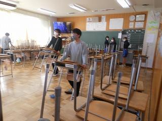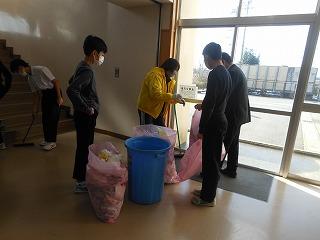 週3回の清掃でもきれいな学校で過ごすために、美化委員会の呼びかけで無言清掃の徹底を目指して取り組んでいます。いろいろな清掃場所で自分の役割を終えた後、気づきの清掃に取り組める生徒が増えてきています。
