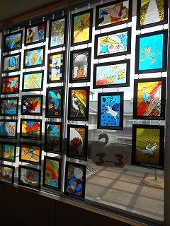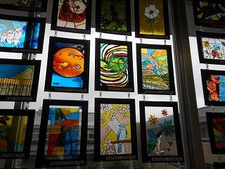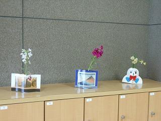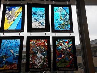3年生が美術の時間に制作していた「スマホスタンド」がクラスごとに完成し、職員室前に展示されています。デザインから工夫を凝らした名作品が並んでいます。