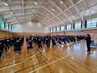 今日の放課後、2年学年プロ委を中心としたメンバーが体育館でリハーサルを行いました。明日は校区内の3小学校と校区外の希望する児童が午後から来校し、新入生説明会に参加します。4月から同級生になる約180名が勢ぞろい。