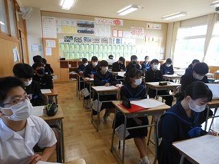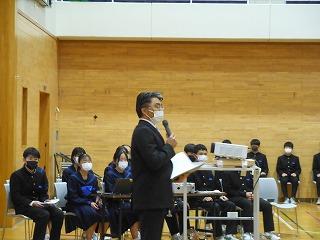 今日は木曜日でしたが、水曜時間割で授業を行い、6限目に全校集会を行いました。