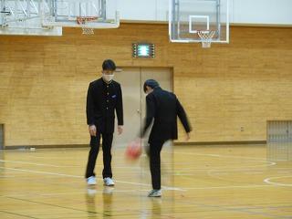 保健体育の授業は1・2年生がバスケットボール・マット運動、3年生はバスケットボール・卓球に行っています。授業も後半に入り、バスケットボールはゲーム練習、マットは自分の演技の組み立てに取り組んでいます。