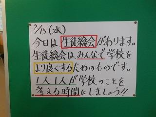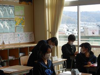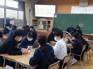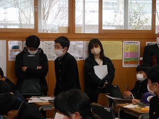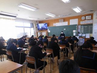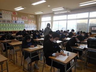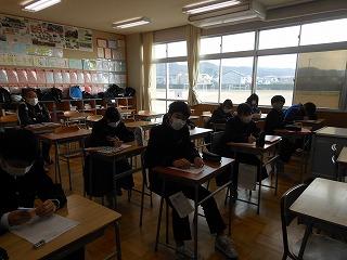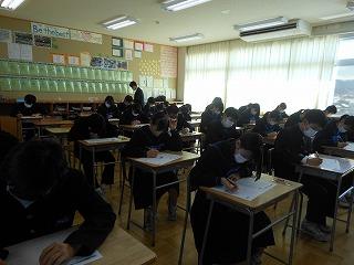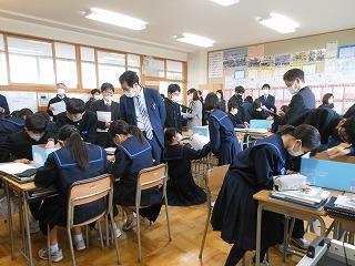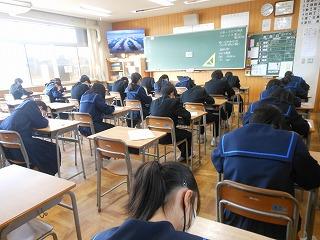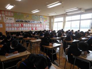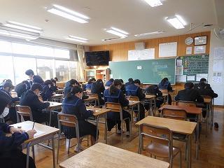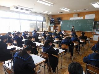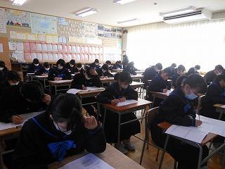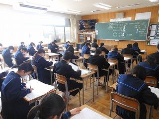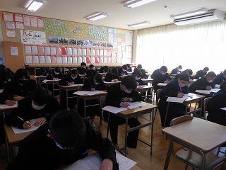 先週は立志式や働く人に学ぶ会、私立高校一般入試、公立高校推薦入試と節目となる行事が多い1週間でしたが、今週は通常の時間割通りの落ち着いた1週間です。ただし、3年生は卒業証書授与式まで1ヶ月あまりとなり、金曜日には3学期期末テストを迎えます。