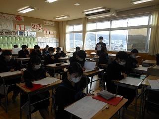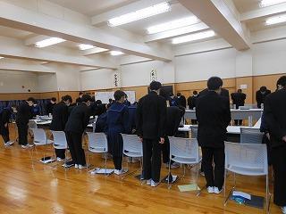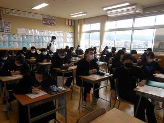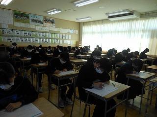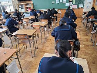 金曜日は1・2年生の3学期期末テストです。今日はそれに先立って、1年生は保健体育と家庭のテストを、2年生は技術のテストを行いました。3学期は定期テストが1回しかないため、期末テストで学習の成果を発揮できるよう、明日の祝日も大切に使いたいですね。