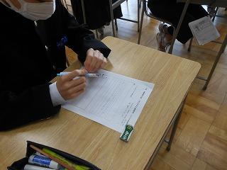 昨日の午後は各クラスで後期生徒総会に向けての学活を行いました。テーマ「よりよい津幡南中学校を自分たちで作り上げよう」に基づいて、各クラスの学級目標の達成度と、残りの学級での生活で達成度を高めるためにはどんなことが必要かを考えました。考えた取組は2月15日の生徒総会で各クラスの代表が発表します。