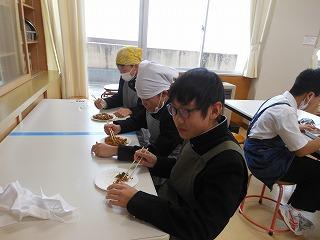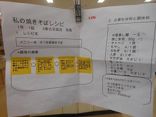 1年生の家庭科では、2回目の調理実習に入りました。1回目は鮭のムニエルでしたが、今回は各自オリジナルの焼きそばです。Chromebookでレシピを作成し、レシピにしたがって、ソース味・塩味と工夫を凝らした焼きそば作りに取り組みました。