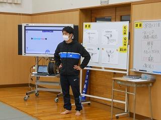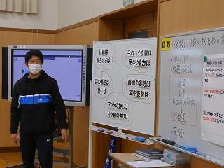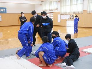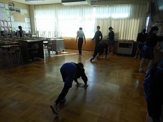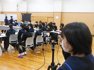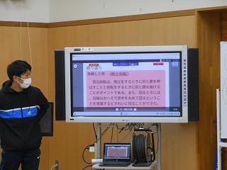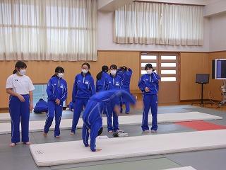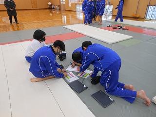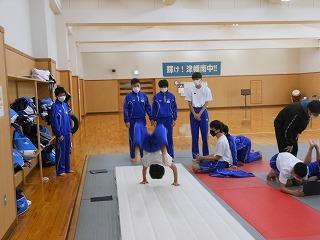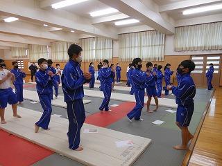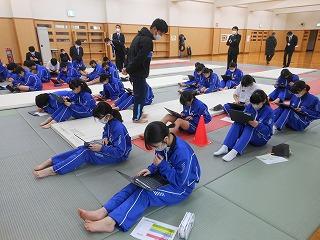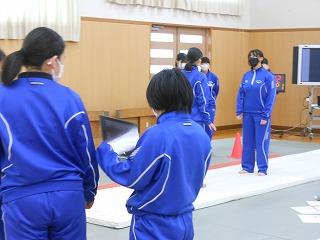 今日は保健体育科の研究授業と研修会を行いました。3限目に1年3組で保健体育の場合先生が「演技を良くするためのポイントは何かな?」を課題にグループでアドバイスをしながら練習し、動画撮影をして、自分の技能を確かめていました。