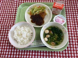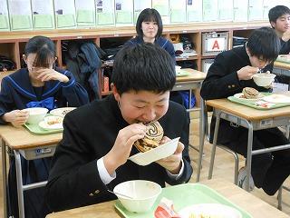 今日の給食は調理員さん手作りのオムレツミートグラタン。あんくるくるパン、ゆでブロッコリー、レタススープとともに美味しくいただきました。3年生の給食はあと16回。4月からはお弁当、温かい昼食を食べることができるのも、もうちょっとになりますね。
