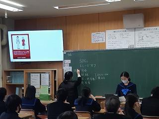 12月に2年生にお知らせした令和5年度修学旅行。来年度5月10日~12日に関西方面に出かけます。学年の修学旅行実行委員会のメンバーも旅行を充実させるために、様々な取組を進めています。先週金曜日の集会では、目的の一つであるSDGsについて理解を深めるために、クイズ形式で学習しました。
