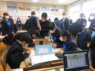 技術の授業は中学校3年間のみ、教育課程に位置づけられています。3年生にとっては最後の技術の授業。Chromebookで3年間のまとめに取り組み、振り返っています。現3年生は入学式に参加した後、すぐに休校となり、様々な制限のある中での中学校生活でした。今年度に入り、学校行事や修学旅行、部活動の大会などが通常に戻り、活躍を見せてくれた3年生です。
