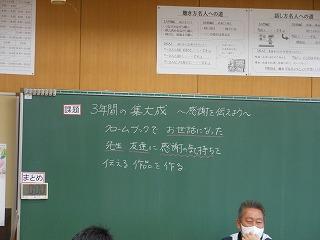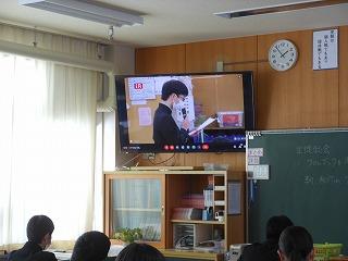今日の給食の時間に、3年生の各クラス代表が運動会で同じ団だった1・2年生のクラスにメッセージを届けました。卒業を来週に控え、先輩として、1・2年生に伝えたいメッセージを一人ひとりがまとめました。