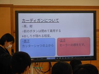 今月15日に行われた生徒議会で出された意見の中から、学校生活のきまりの見直しや改善点について話し合いました。この話し合いをもとに、来年度の取組につなげていくことになります。