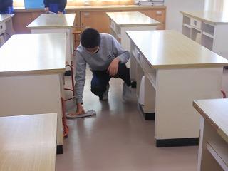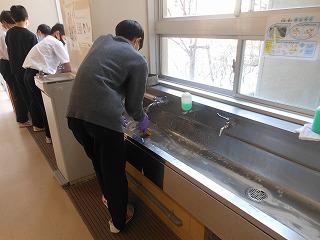 週3回の清掃でもきれいな学校で過ごすために、美化委員会の呼びかけで無言清掃の徹底を目指して取り組んでいます。いろいろな清掃場所で自分の役割を終えた後、気づきの清掃に取り組める生徒が増えてきています。