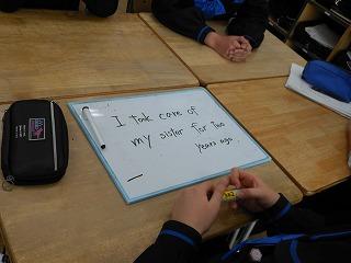 ▽2年生の教室前掲示板には「立志式を終えて」の感想が掲示されています。