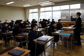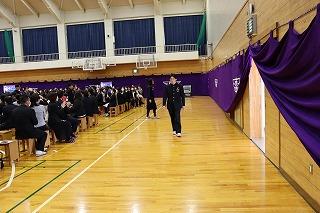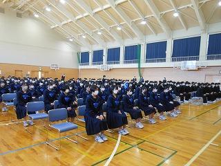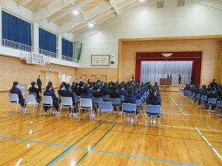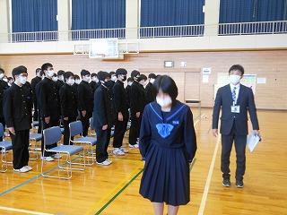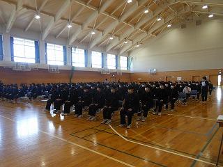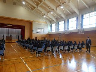 今日は水曜日時間割で5限の後に3月の全校集会を行いました。