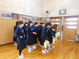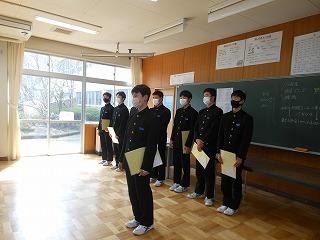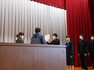 また、男子卓球部と校内給食献立コンクールの表彰披露もありました。