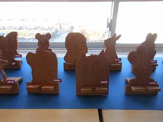 昨日で2年3組と5組の技術が終わり、2年6クラスのキーホルダーが完成しました。残り3日間になりますが、キーホルダー作品展が職員室前で行われています。