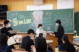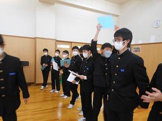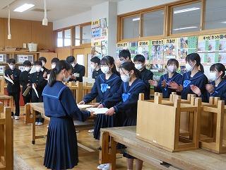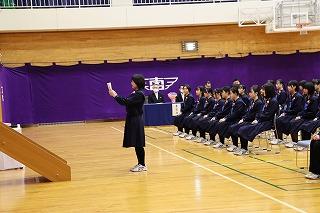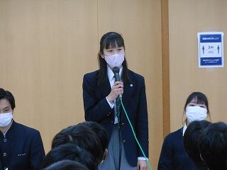 最後に生徒会の時間では後期生徒会長の青木日葵さんが「自分たちはどんなことがこの1年で身についたか?」「身についた力を高校や来年度にどうつなげていくか?」について、全校生徒にメッセージを伝えてくれました。
