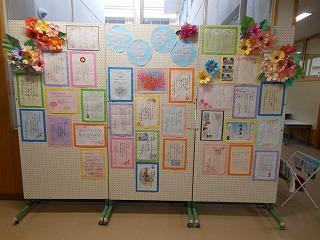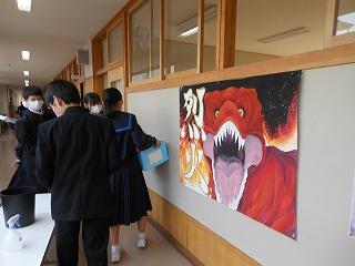 3組・4組に続いて、2組・5組の生徒の作品が先週末より展示されています。