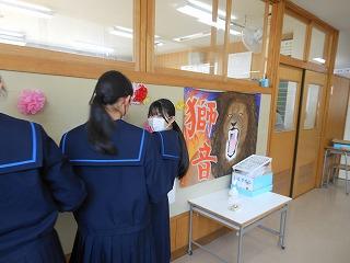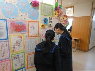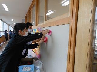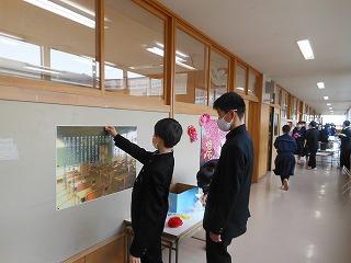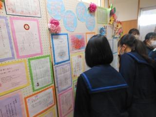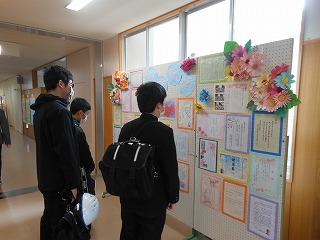 図書室前に7枚の掲示板が並びました。2月の文化委員会の取り組みで、卒業生から在校生へのメッセージと在校生から卒業生へのメッセージが掲示されています。3年生が登校するのは残り7回です。当たり前の日常が一区切りを迎える季節が近づいてきました。