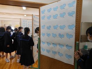 ▽3月1日 学校祭で制作した全校生徒のアート作品を1年4組の生徒たちが修復してくれました。