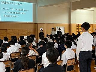 1年生は金曜日の校外活動、2年生は明日からの職場体験学習に備えて、打ち合わせを行いました。
