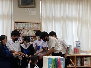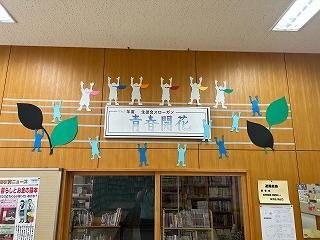 本日午後から、図書ボランティアさんたちが図書室に集まり、掲示物を作ってくれました。