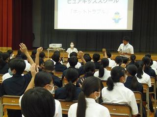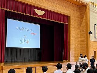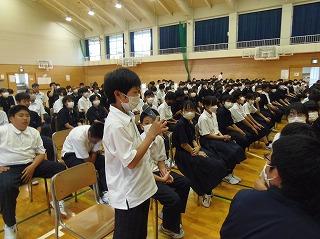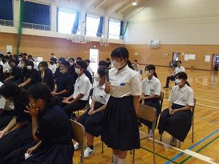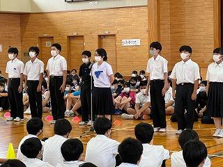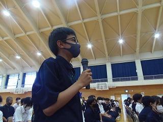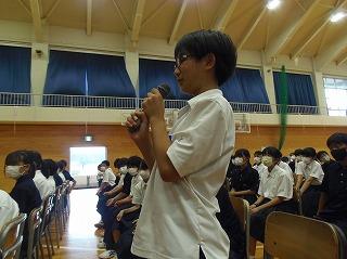 生徒会からは、保健委員会から虫歯にならないための対策、なってからの治療の大切さについてのお話と、熱中症に気を付けて、規則正しい生活をしていこう、というお話がありました。