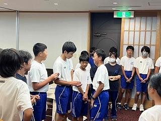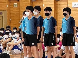 引き続き行われた北信越、全国大会壮行会では、各部の顧問の先生から選手の紹介がされ、自分たちで抱負を語りました。大会では津幡南中旋風を巻き起こしてくれることを期待しています。