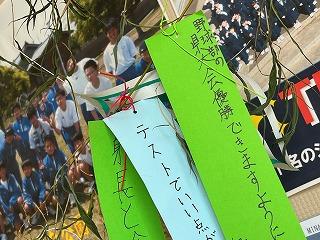 願い事を書く時になって初めて、いまの自分が願っていることはなんだろう?と考える生徒もいたと思います。小さい頃に思い描いたたくさんの夢を、大きくなるにつれてあきらめてしまうことも多いのですが、いまの自分の願いを忘れずに、あきらめないで成長していってほしいと思います。願い事は願わないと叶いません。叶う日もきっと来ますよ。