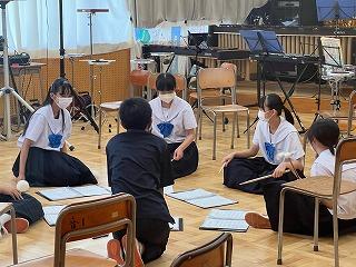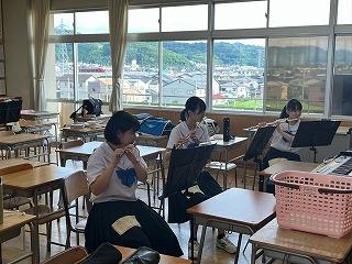 通知表渡しの最中も、吹奏楽部は県吹奏楽コンクールに向けて練習をがんばっています。