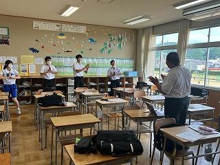 暑い一日になったため、全校集会はリモートで行われました。