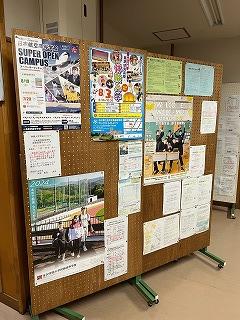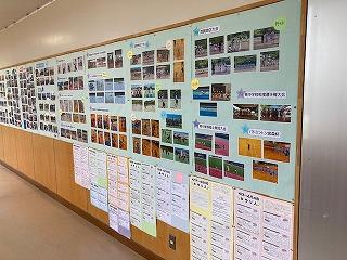 おまんロマンプロジェクトについて、プロジェクトの全貌が生徒玄関前ホールの展示で説明されています。