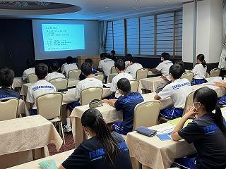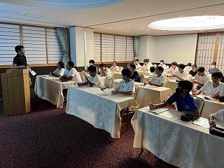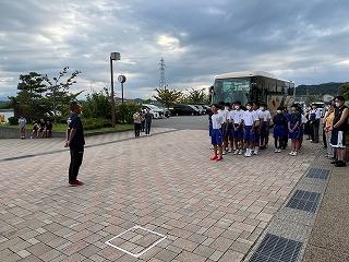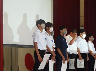校長先生から激励の言葉として、これからけがに気を付けて練習に励んでもらいたいこと、大会では機敏な行動・あいさつ・後片付け等立派な態度で臨んでもらいたいことが話されました。そして、一人でも多く北信越や全国大会等の上位大会へ進出することへの期待も託されました。また、ボート部の全日本選手権、吹奏楽部の県吹奏楽コンクール、科学情報部のサイエンスチャレンジとWRO県地区予選についても激励の言葉をいただきました。