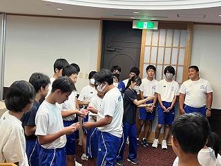 まず、表彰伝達で、加賀地区大会兼県体予選会での多くの賞典が披露されました。
