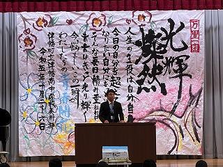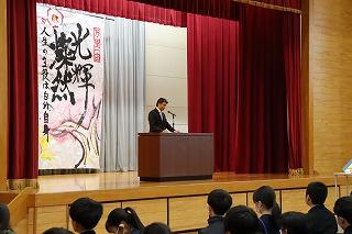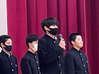 畠中健瑠キャプテンの力強いあいさつのあと、校長先生と森幸翔生徒会長から激励の言葉が送られました。
