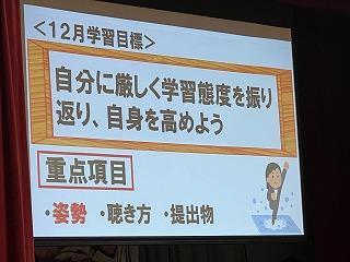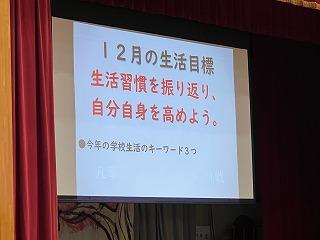 12月の生活目標「生活習慣を振り返り、自分自身を高めよう」についてのお話がありました。