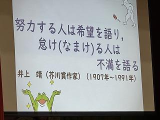 また、「上を見る人 下を見る人」についてのお話がありました。言い換えれば、積極性、自主性がある人と、現在の自分に満足してしまったり、人を見下してしまう人の違いについてです。自分はどちら側なのか考えてみましょう、というお話でした。
