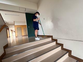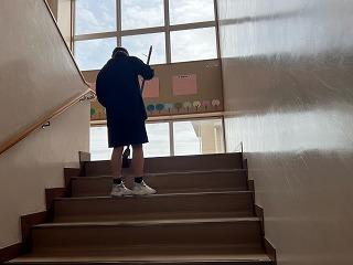 どの部員も快く清掃を行ってくれました。おかげで階段も美しくなり、新任の先生方も気持ちよく来校されることでしょう。