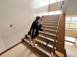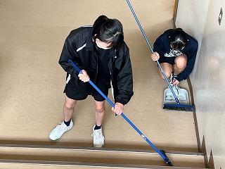 本日午前の練習後、女子バスケットボール部のみなさんが、階段の清掃をしてくれました。
