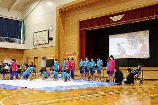全校生徒が体育館に集って、心を一つにしてのパフォーマンス。