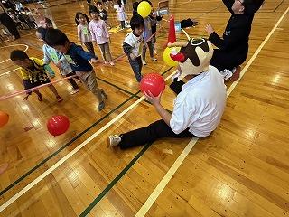 風船バレーでは、園児よりも中学生が汗をかいていました。