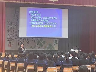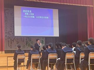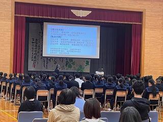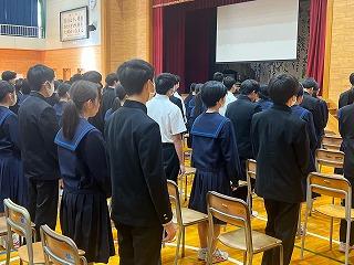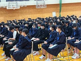 主体的に授業に参加することの大切さと、期末テストに向けてのお話でした。