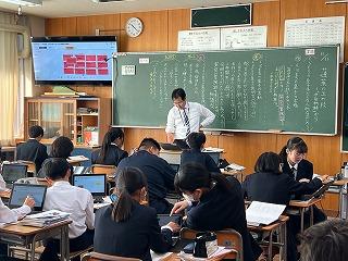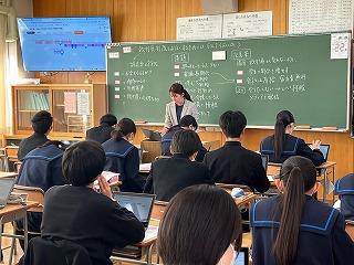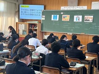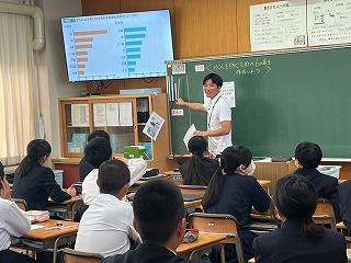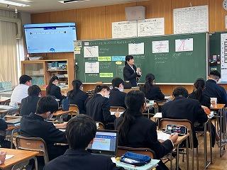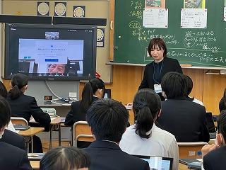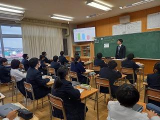 がんの予防に関する保健の授業で、学生さんたちは熱心にメモを取りながら授業を参観していました。