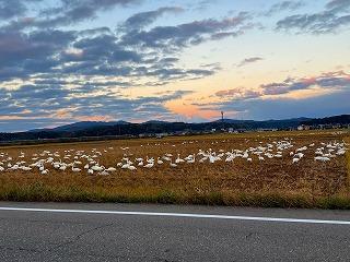 群れをなして、田んぼの一角に集まっている様子は、津幡町の冬の風物詩ですね。