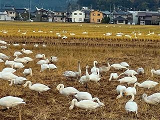 学校周辺の田んぼでは、白鳥が飛来しています。