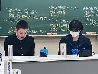 協議事項では、体育の時間が終わってからの移動がうるさいことやギリギリな時間に登校してくる生徒が多い件などが挙げられ、生徒たちで解決に向けて話し合われました。