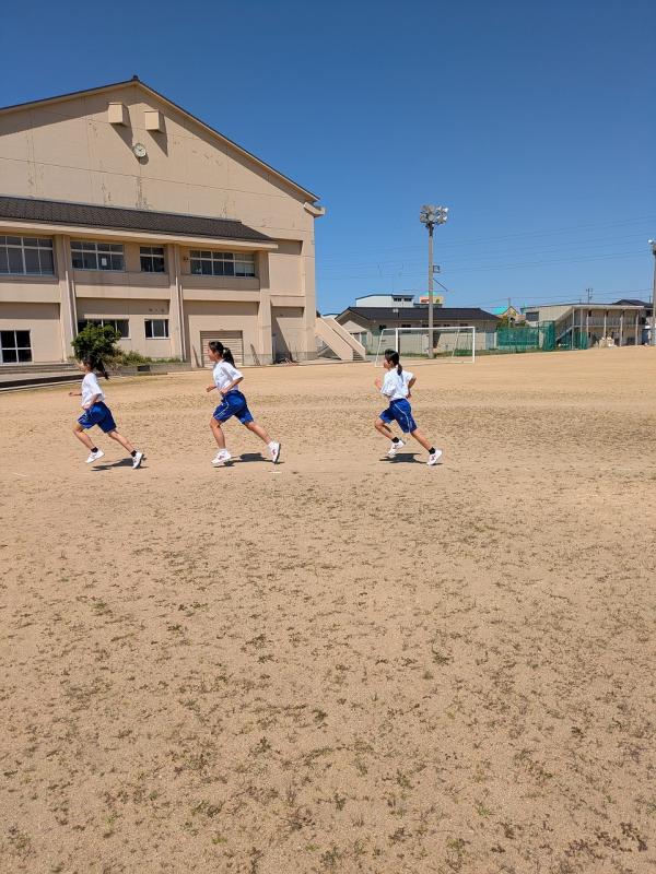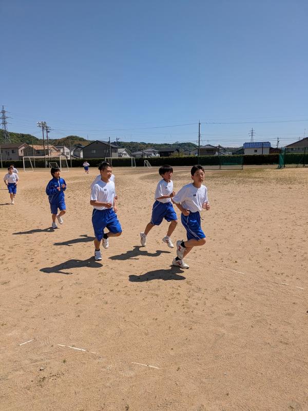 本日(5月8日)、5限目に1年3・4組は持久走を行いました。シャトルランもきついですが、この持久走も生徒たちにとって、本音を言えばやりたくないランキング上位に入る種目です。それでも生徒たちは、日差しが照り付ける中、男子は1500m・女子は1000mを走り切りました。きついトレーニングですが、これで昨日の自分より強くなれたと思います。男子のトップは3組の渡邉悠斗さんの5分49秒、女子は4組の池田咲來さんの3分50秒でした。